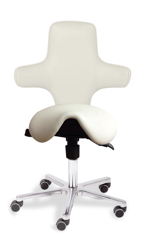 Sanus Bürostuhl Variowip Sattel, Sitzhöhe 44-57 cm, Leder, weiß, mit Feststeller