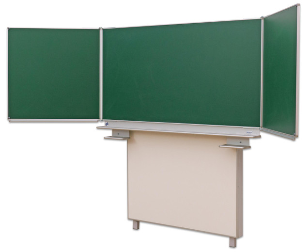 An der Tafel sind eine abgerundete, breite Kreideablage und eine doppelte Schwammablage mit Sicherheitskantenschutz befestigt, um ein komfortables Arbeiten zu ermöglichen. Lehrer und Schüler arbeiten in einer ergonomisch sinnvollen Arbeitshöhe. Die Tafelfläche kann man sehr leise und leicht hoch und runter bewegen. Außerdem können die zwei äußeren Tafelflügel aus- und eingeklappt werden, wodurch die Schreibfläche variierbar ist.