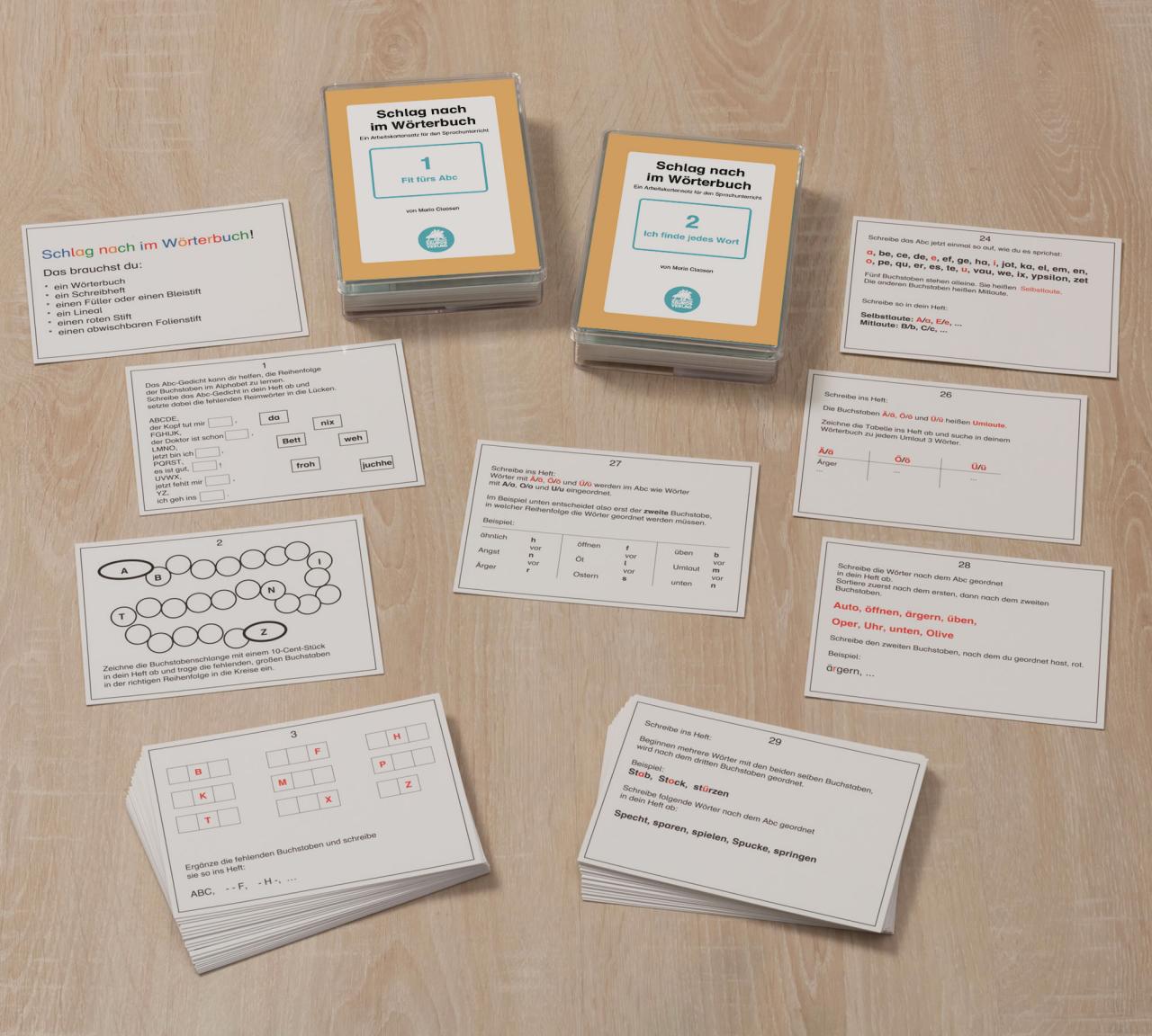 Die einzelnen Karten bauen aufeinander auf, sodass sich die Kinder die Technik des Nachschlagens systematisch erarbeiten können.