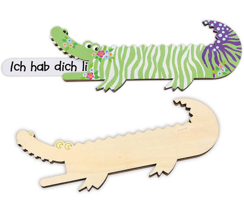 Das Lesekrokodil kann zudem individuell gestaltet werden, so kann jedes Kind sein eigenes Kroko mit Farben bemalen oder mit Serviettentechnik oder hübschen Mosaik- oder Glitzersteinen bekleben. Der Kreativität sind hier keine Grenzen gesetzt.