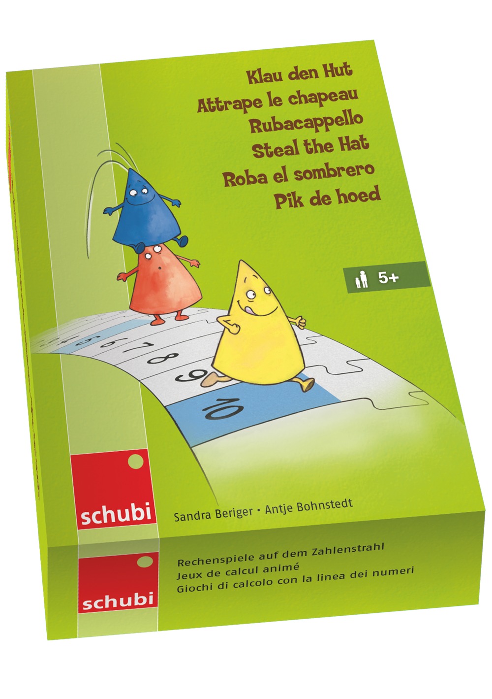 Wem gelingt es, möglichst viele Hütchen zu erobern und sicher ins Ziel zu bringen? Gefragt sind Addieren und Subtrahieren im Zahlenraum bis 25. Doch aufgepasst, wer Pech hat, muss die Hälfte seiner Hütchen bereits vor dem Ziel wieder abgeben. Jetzt nicht ärgern, sondern nochmals einen Raubzug starten - so bleibt das Spiel spannend bis zum letzten Zug. Das Spieleset enthält 6 attraktive Rechenspiele zu zentralen Bereichen mathematischen Lernens: Menge und Zahl Nachbarzahlen, Ordnungszahlen Addition und Subtraktion bis 25 Halbieren und Verdoppeln Gerade und ungerade Zahlen