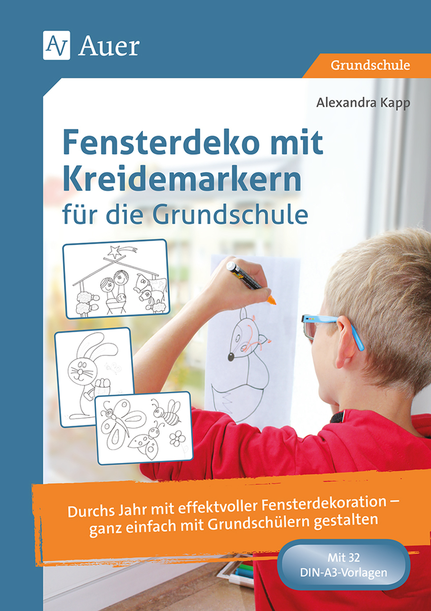 Schon die Kleinsten können in Gemeinschaftsarbeit tolle Dekorationen gestalten, während die Größeren die zeichnerische Herausforderung suchen. Die Motive lassen sich leicht an Ihre jeweilige Fenstersituation anpassen und sehen es zudem vor, dass mehrere Kinder an einem Motiv arbeiten können.