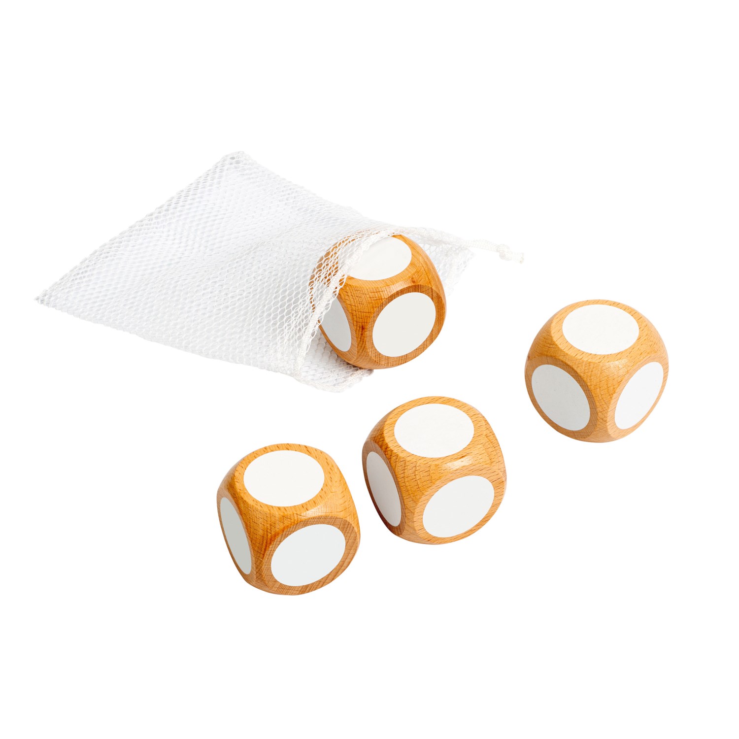 4 beschreibbare Würfel (5x5 cm) in Kunststoffnetz