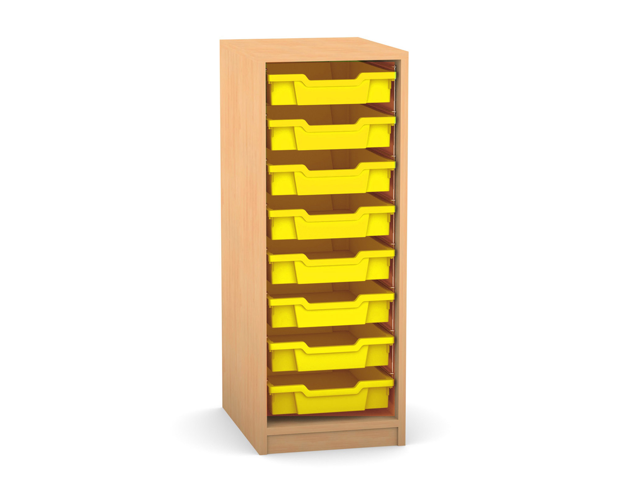 Das 1-reihige Regal wird mit 8 gelben Gratnells-Materialboxen geliefert. Sie können hier verschiedenste Utensilien aufbewahren und einsortieren.