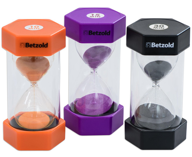 Viele Sandkörner für ein gutes Zeitgefühl Diese Sanduhren vermitteln ein ideales Gefühl dafür wie lang zum Beispiel 30 Minuten sein können. Die Schüler lernen Ihre Aufgaben in der vorgegebenen Zeit zu erledigen und können Ihre Zeit selbstständig einteilen. Der farbige Sand der Uhren ist durch eine stabile Kunststoffhülle geschützt. Einheiten: 10, 15, 30 Minuten.