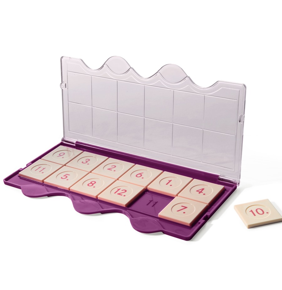 miniLÜK-Lösungsgerät mit Klarsichtdeckel und 12 Aufgabenplättchen: Kasten 25 x 13 cm, Aufgabenplättchen 4 x 4 cm.