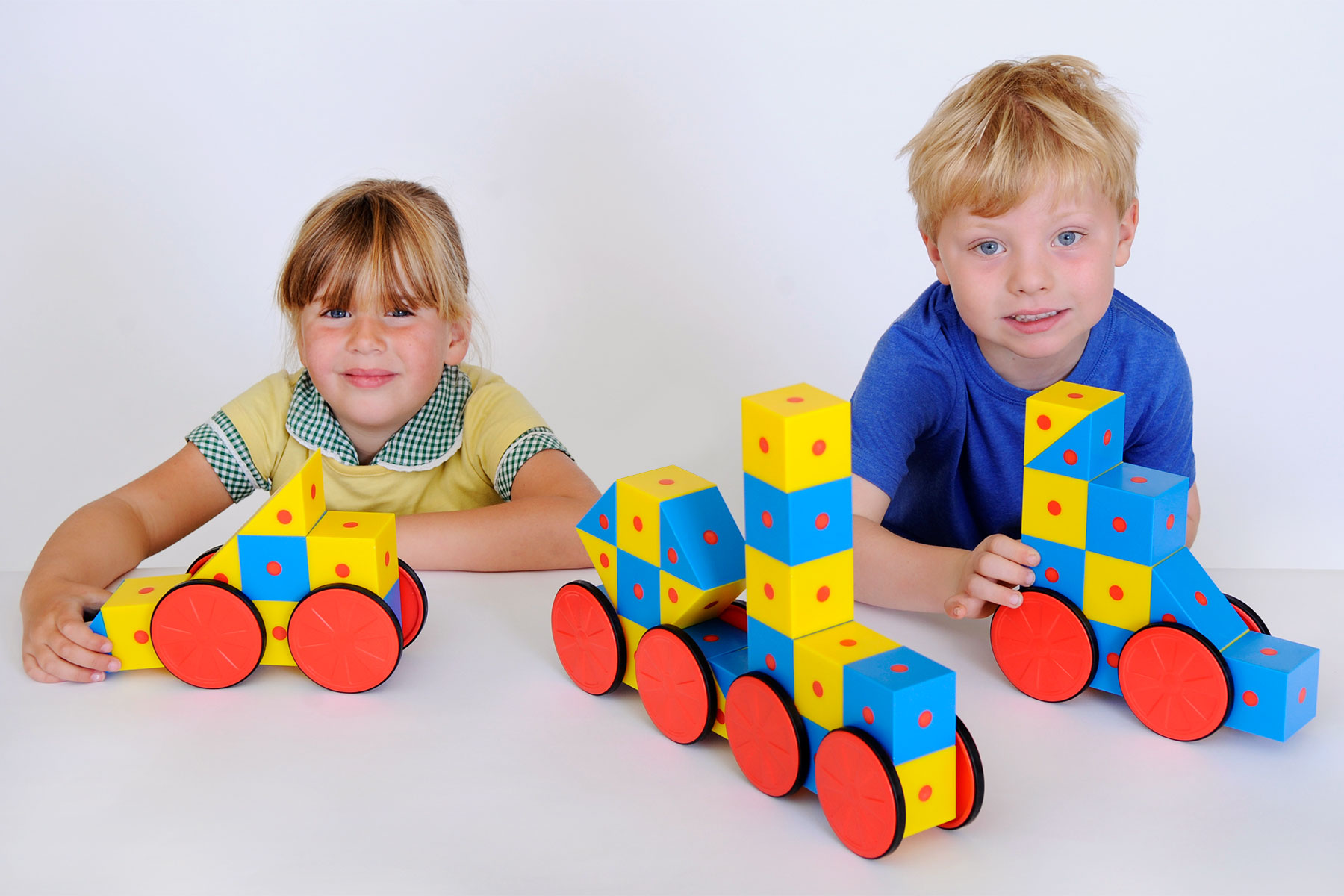 Eine unterhaltsame Möglichkeit, Konstruktionen mit magnetischen 3D-Formen zu erkunden. Gelbe Blöcke ziehen blaue Blöcke an und stoßen wie Farben ab. Lehrt die Prinzipien des Magnetismus. Würfelblöcke messen 5 cm3. Erstellen Sie Fahrzeuge mit den enthaltenen Rädern. Illustriertes Poster enthalten.