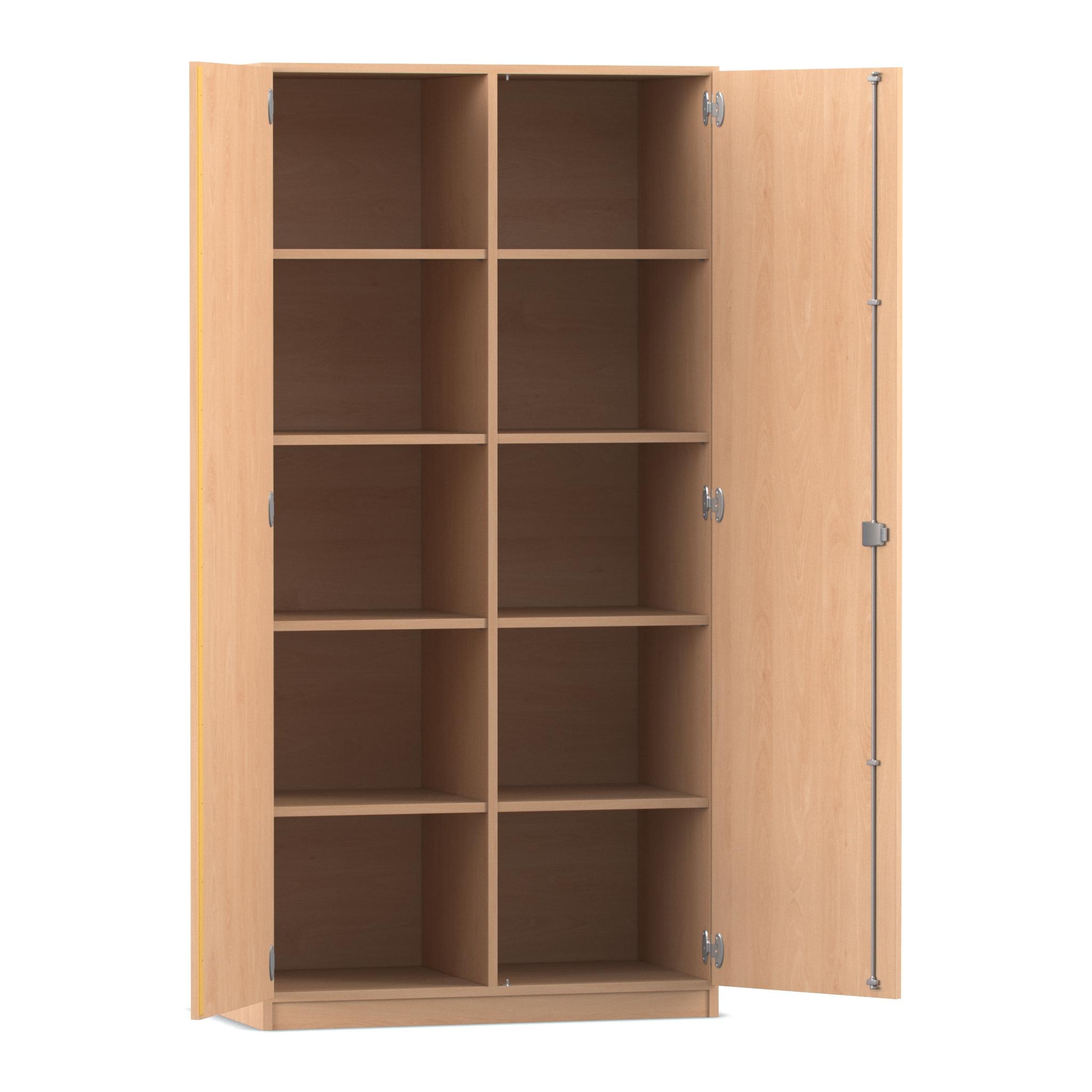 Mit den großzügigen 5 Ebenen (4 Einlegeböden) findet alles seinen Platz und ist sicher und ordentlich verstaut. Der Schrank ist mit Drehtüren und 4 Einlegeböden ausgestattet. Besonders geeignet z.B. als Schrank für Bücher oder Papier. Die Mittelwand verkürzt die Spannweite der Böden und wirkt so einer Durchbiegung entgegen.