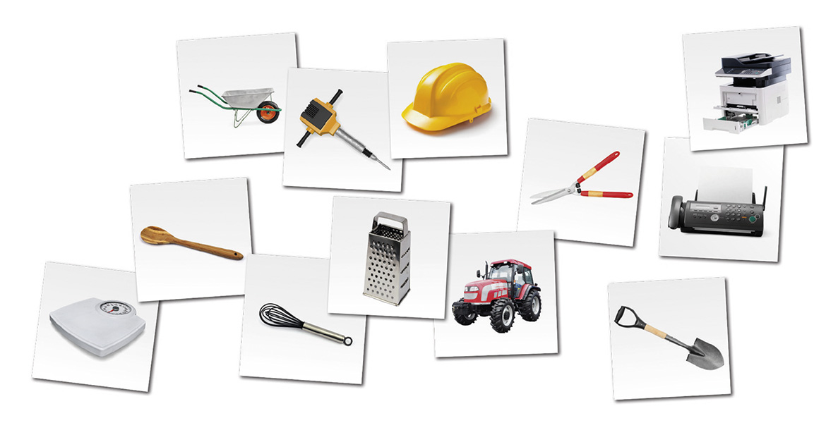 Diese äußerst umfangreiche und systematische Bildersammlung umfasst fünf Kategorien von Objekten, die in spezifischen Alltagskontexten häufige Verwendung finden: