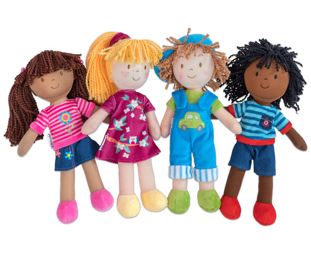 Selbstverständlich können die Kinder den Puppen auch ganz individuelle Charaktere geben. Die Puppen fördern die Interaktion und die Fantasie. Schon die Allerkleinsten werden die niedlichen Spielgefährten lieben. Dank der handlichen Größe von ca. 30 cm sind sie für kleine und große Puppen-Fans geeignet. Falls eine der Puppen einmal schmutzig wird, empfehlen wir eine Wäsche von Hand.