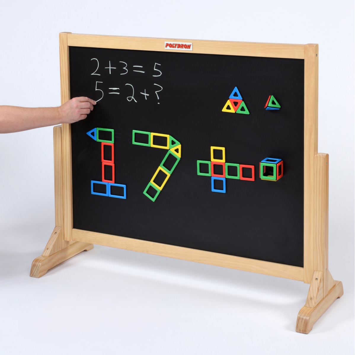 Multifunktional - magnetische Tafeloberfläche auf einer Seite und trocken abwischen auf der Rückseite. Ein großartiges Werkzeug zur Demonstration geometrischer Netze mit Magnetic Polydron oder zum Unterrichten im Klassenzimmer mit trocken abwischbaren Stiften oder Kreide. Der Rahmen besteht aus Kiefernholz. Robuste und klobige Beine sind ideal für Stabilität in geschäftigen Klassenzimmern. Die Schreibfläche misst 100 x 80 cm. Garantie für 5 Jahre.