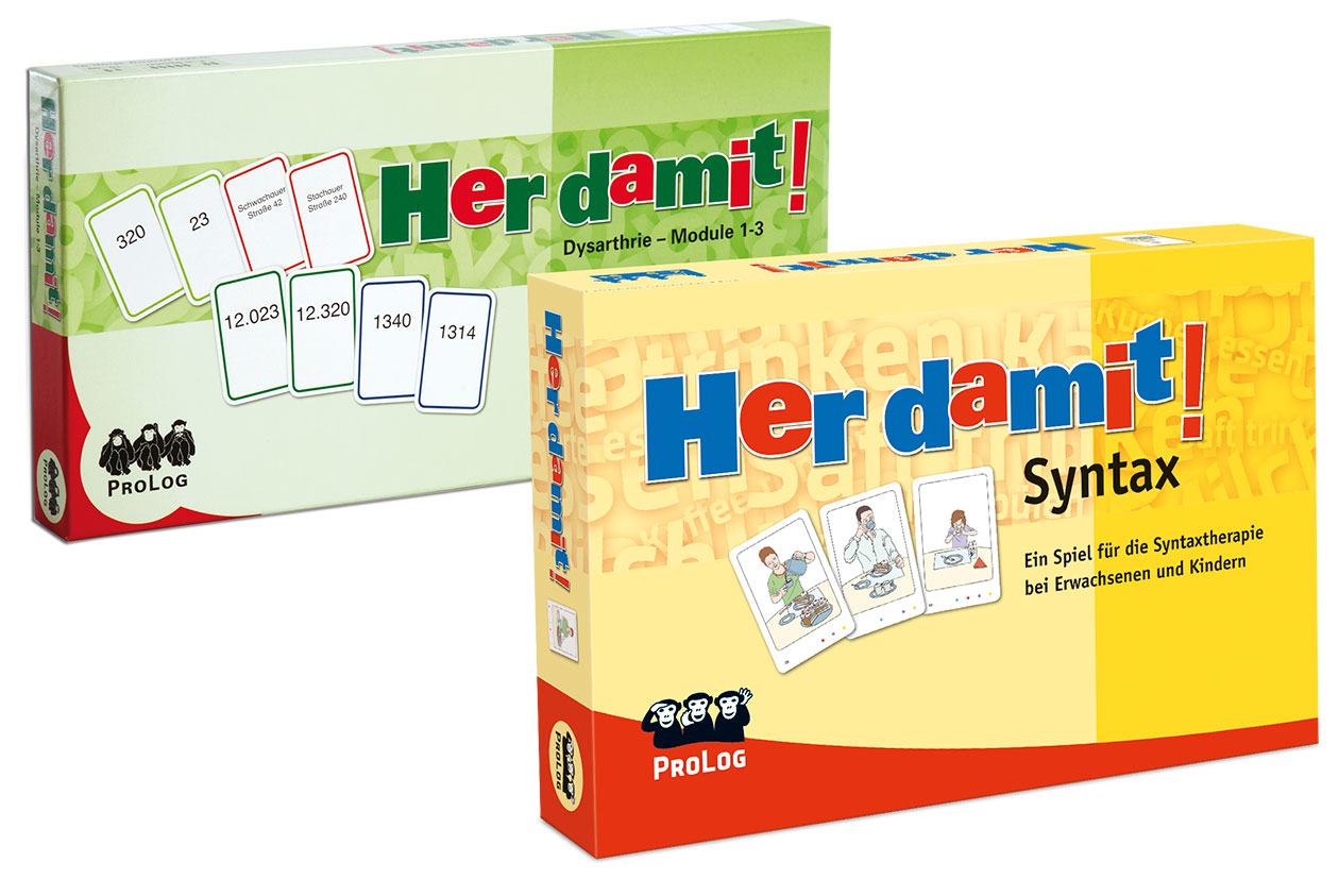 Her damit! Paket enthält die Spiele Her damit! - "Dysarthrie" und "Syntax"